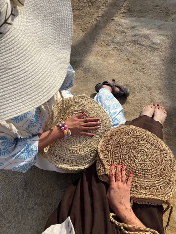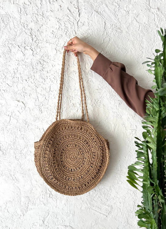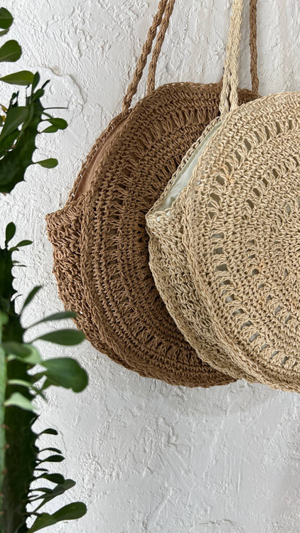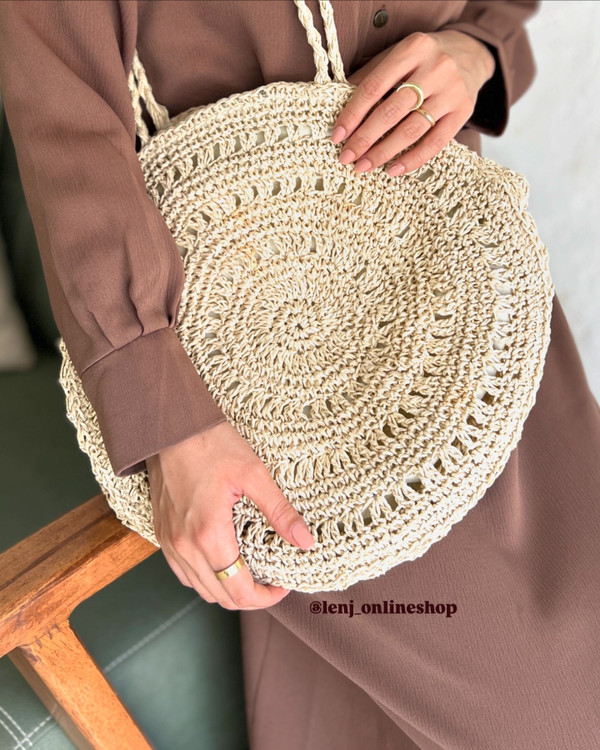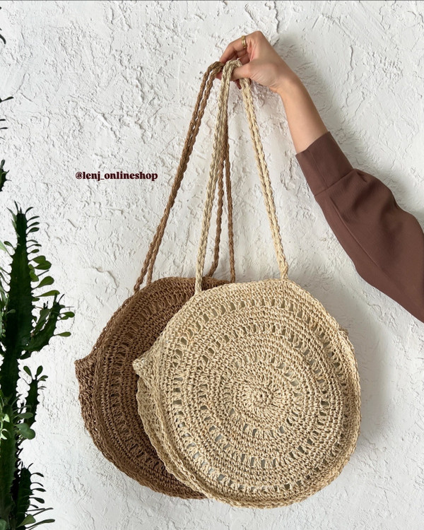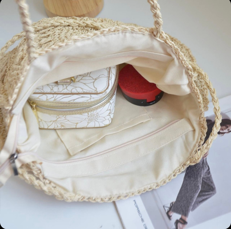 کیف رافیا وارداتی داخل کار استر دوزی شده دارای زیپ و جیب داخلی