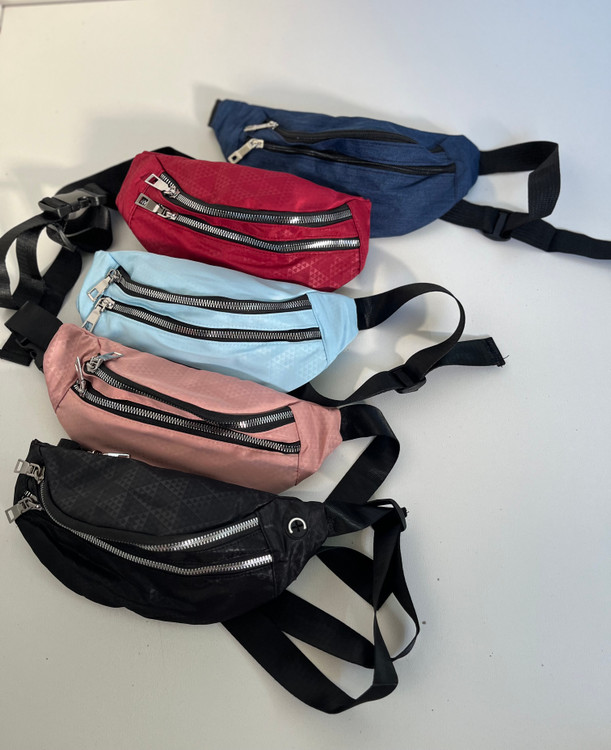 دارای سه محفظه ، دو زیپ در جلو و یک زیپ در پشت کار