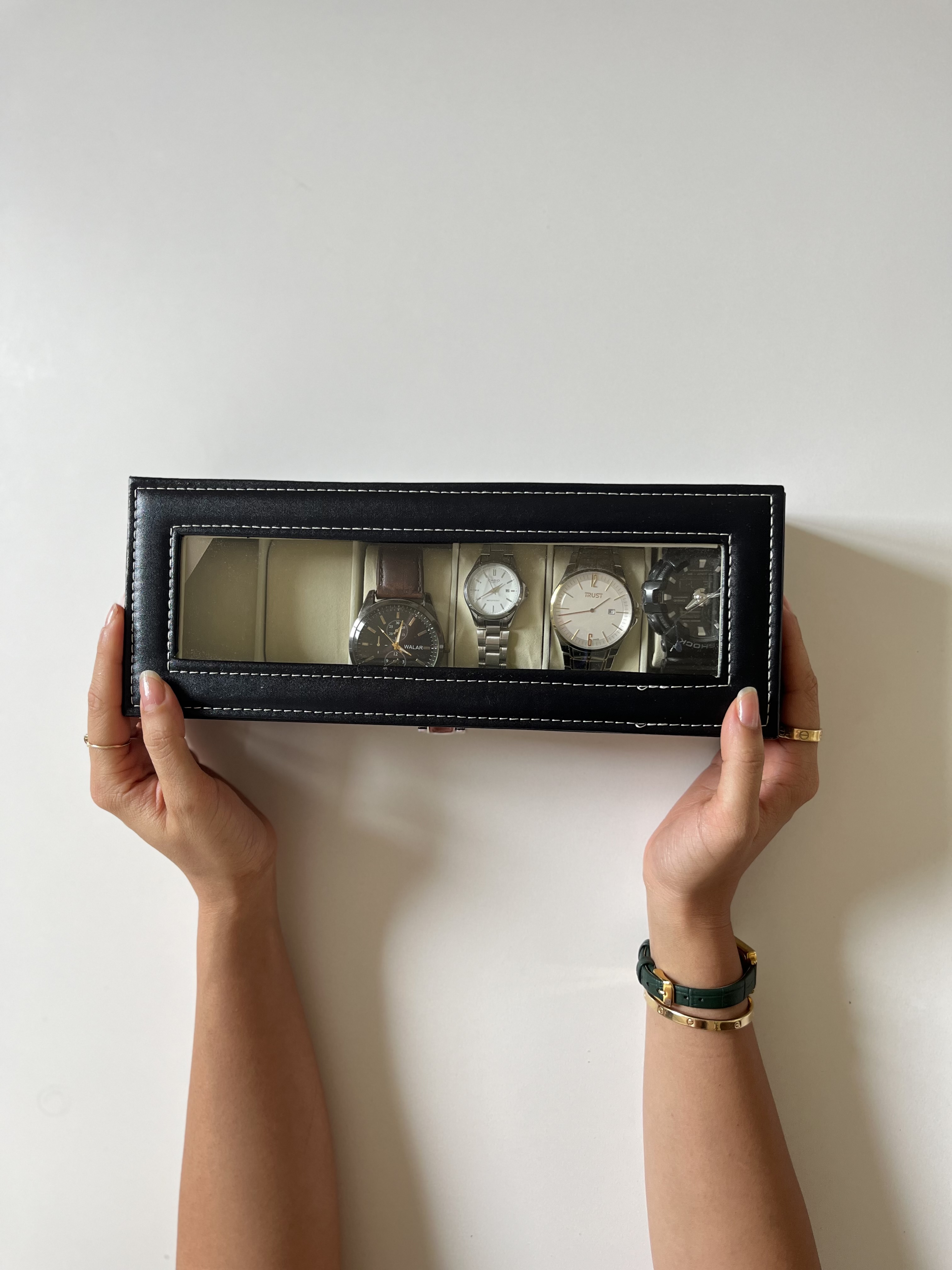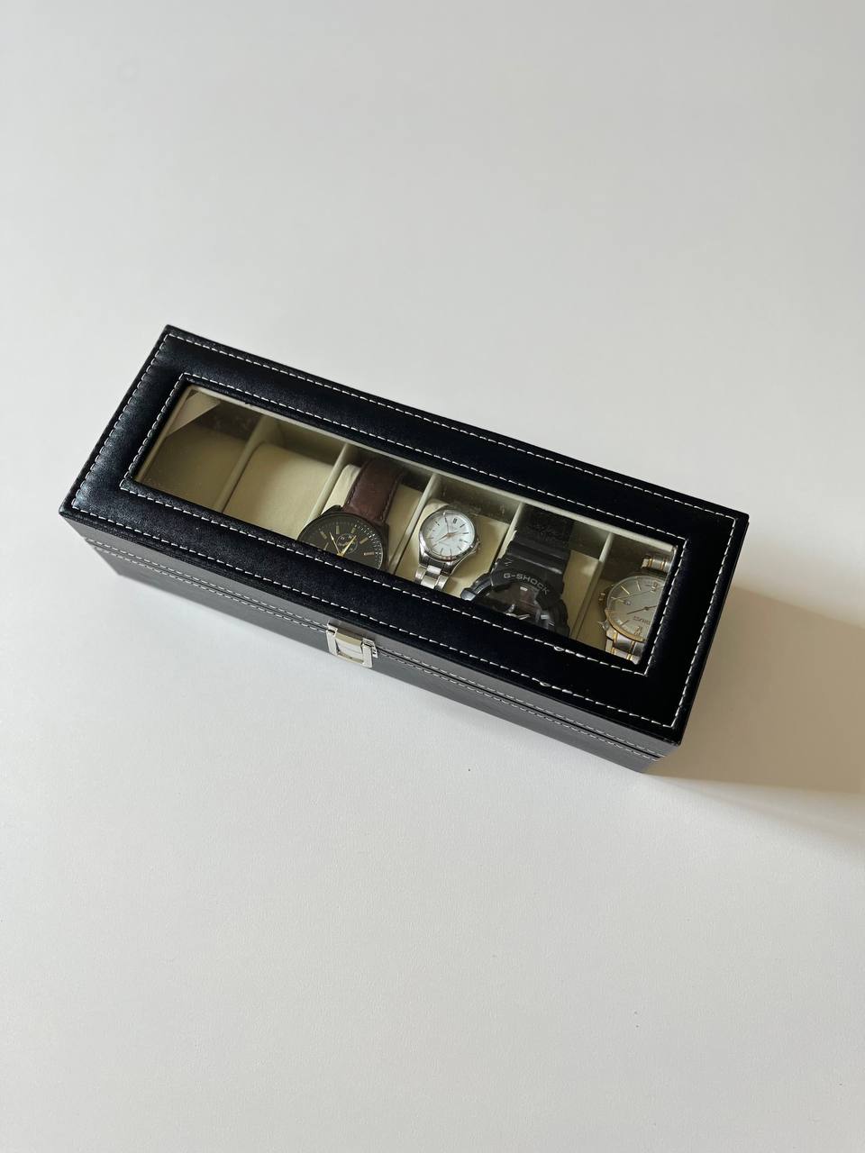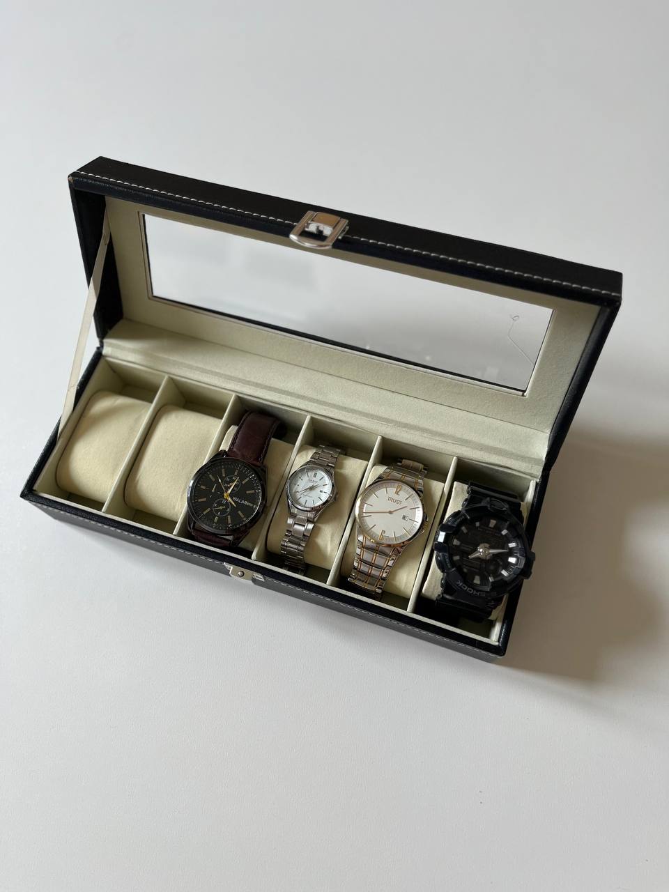 باکس نظم دهنده ساعت باکس ساعت و دستبند وارداتی ۶ خانه ✔️وارداتی وبسیار با کیفیت ✔️ابعاد 30.5 در 11.5 در ارتفاع 8 ✔️جنس داخلی کار جیر و بیرون کار چرم pu ✔️قفل میشود