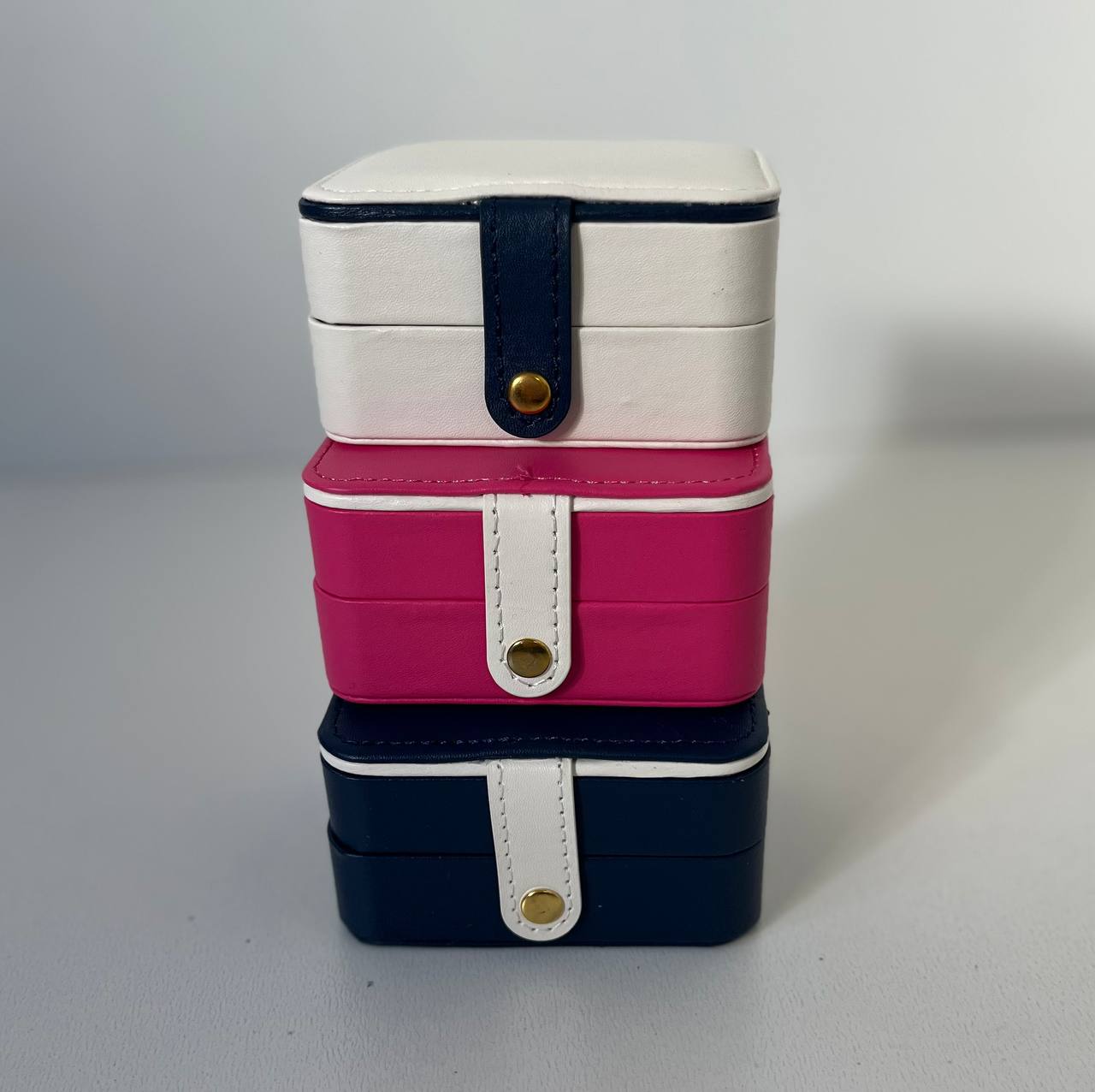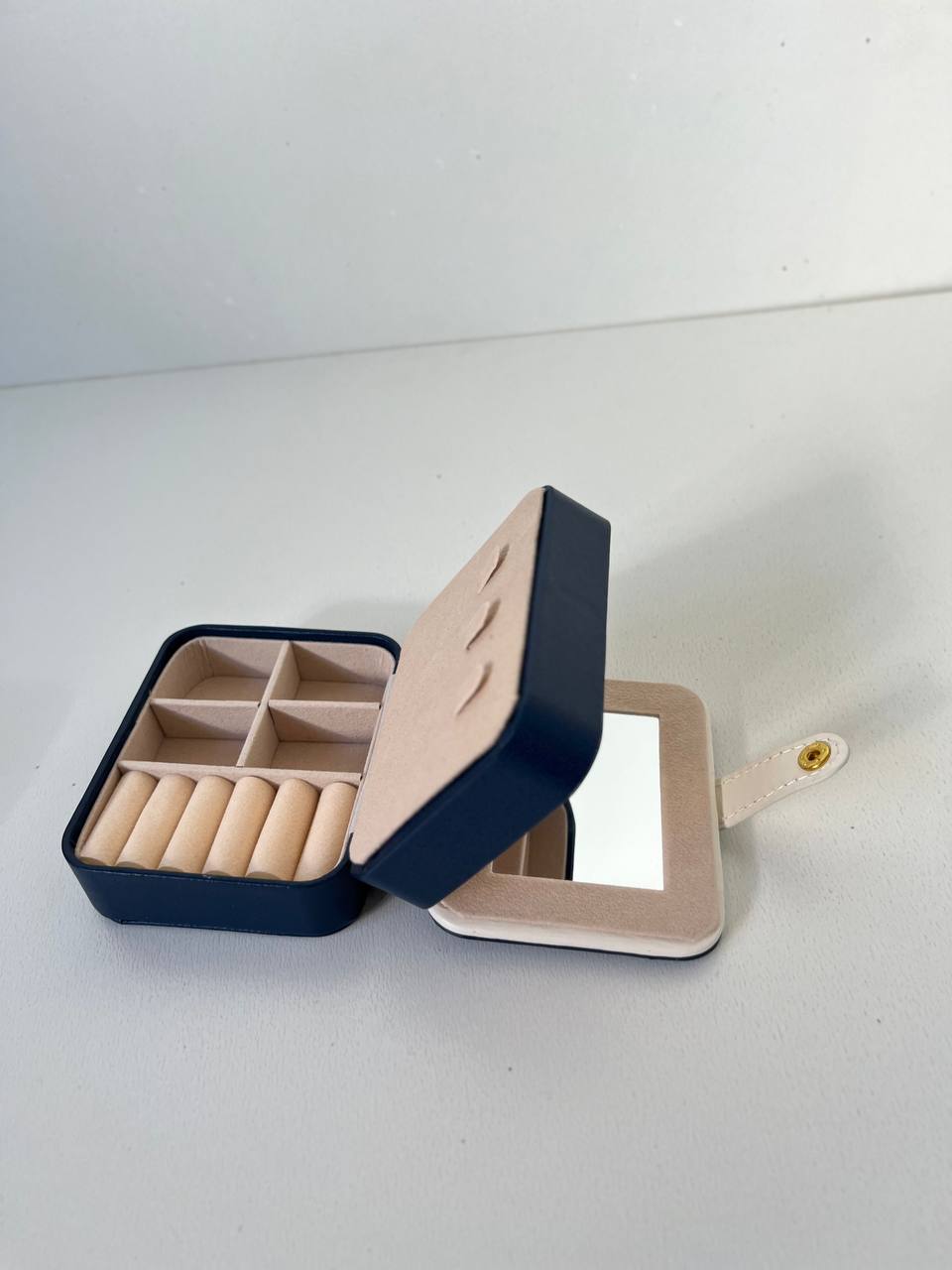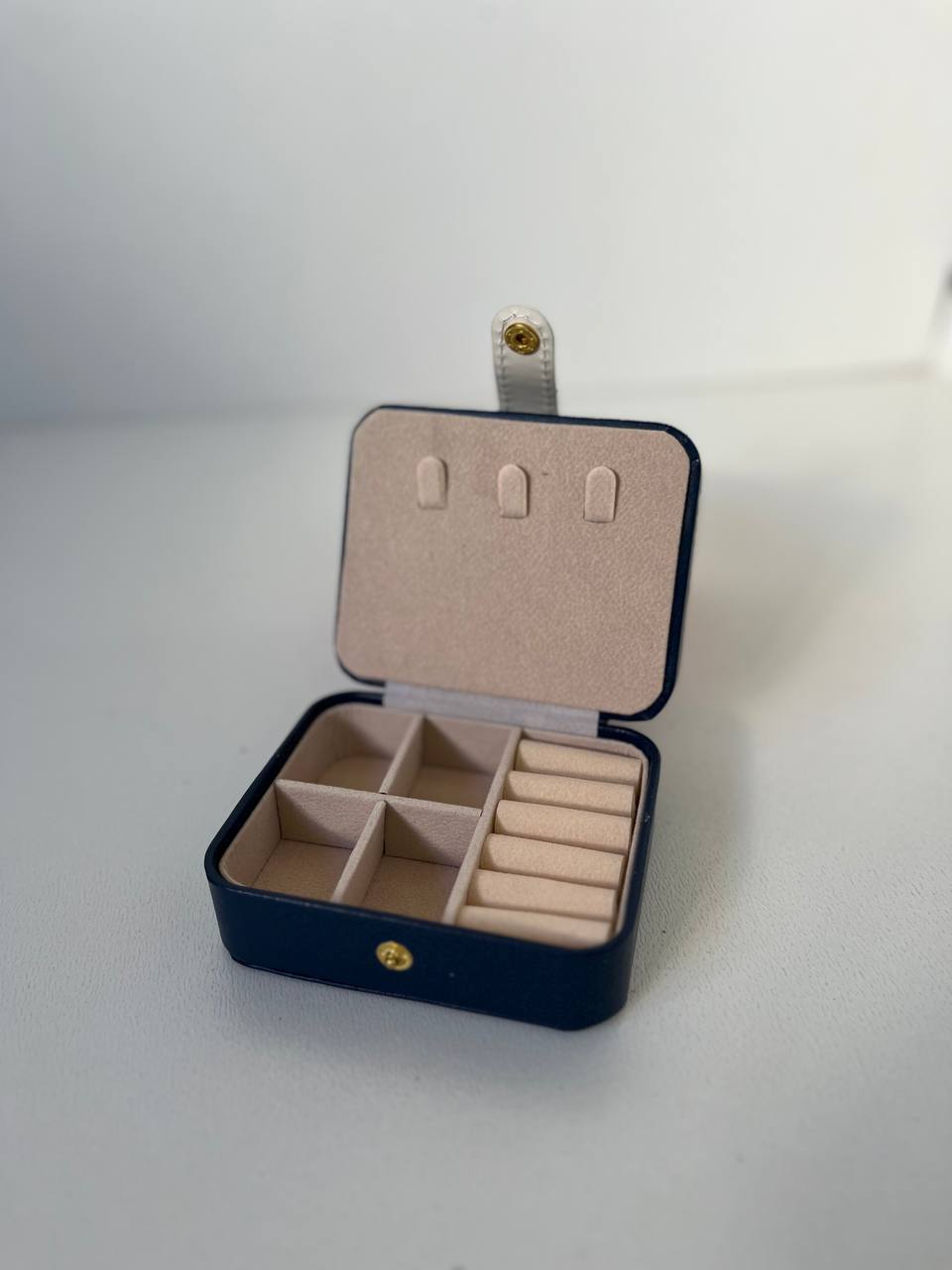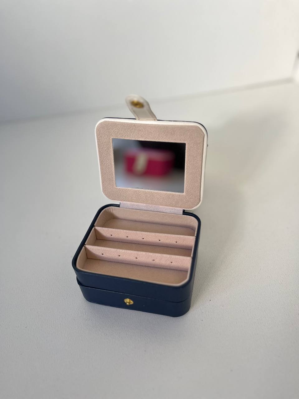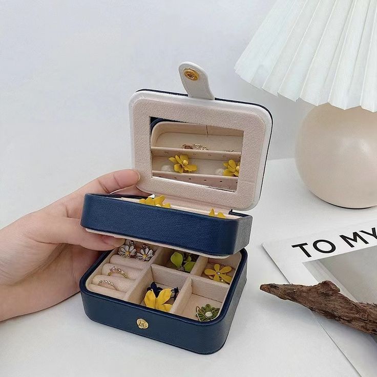 جعبه جواهرات مسافرتی دوطبقه کار وارداتی درجه یک میباشد جنس بیرون کار چرم با کیفیت و داخل کار جیر مخملی میباشد اندازه : 5*9*10 مناسب نظم دادن به اکسسوری و جواهرات زیبای شما