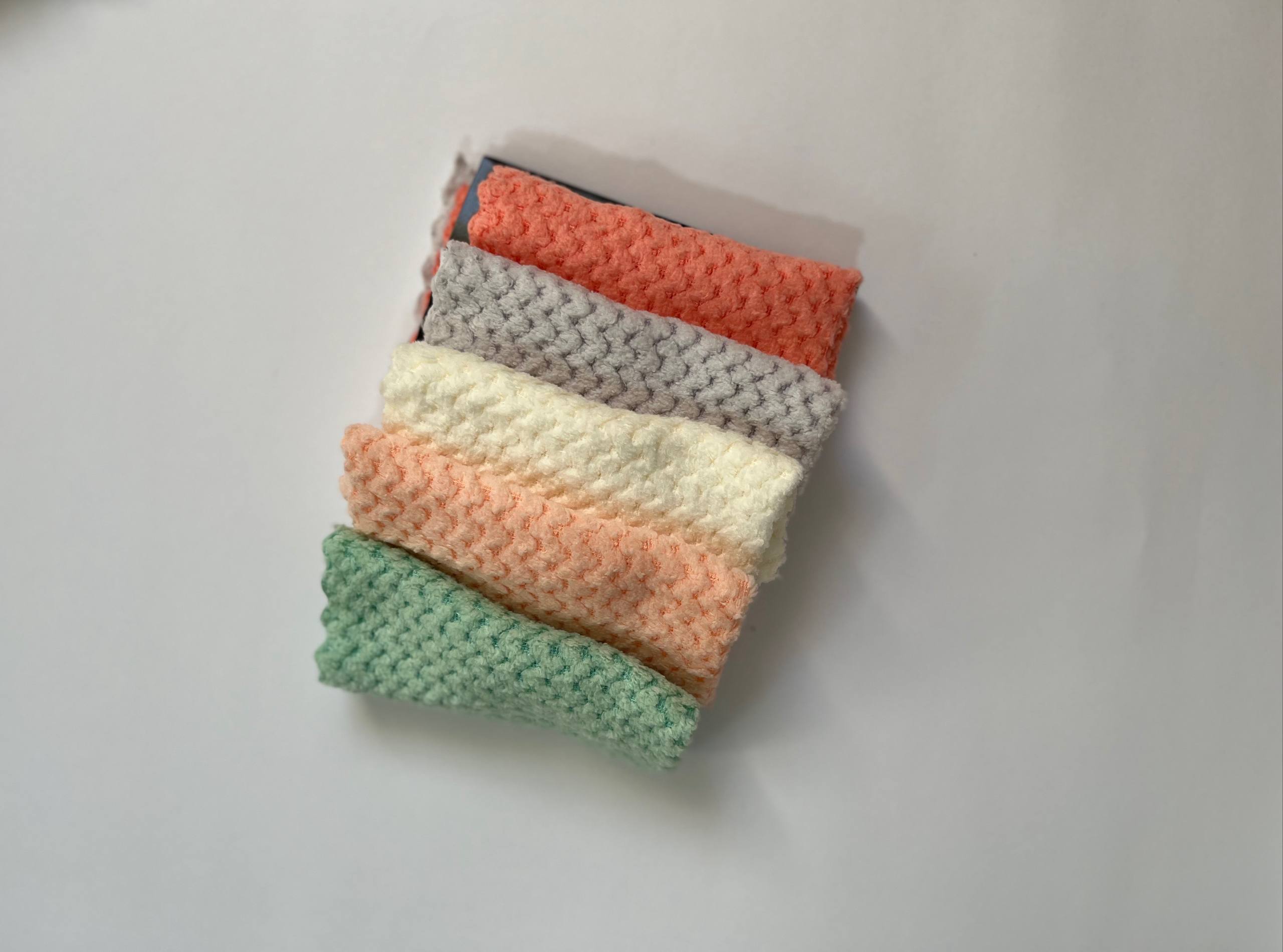 دستمال آشپزخانه 5تایی 25*25 تعداد: 5 عدد در هر بسته ابعاد: 25 در 25 سانتیمتر برای هر دستمال ویژگیها: آنتی باکتریال، قابلیت جذب بالا، قابل شستشو، سبک و کارآمد کیفیت درجه یک: دستمالهای پولیشی با دوام و مناسب برای استفاده طولانیمدت. آبگیری بالا: مناسب برای تمیز کردن سطوح مختلف و جذب کامل آب و رطوبت. رنگبندی متنوع: 5 رنگ مختلف در یک بسته که به شما امکان میدهد از آنها در هر مکان و زمانی استفاده کنید. کاربردی و پرفروش: محصولی پرطرفدار و پرکاربرد برای نظافت روزمره منزل یا محل کار.